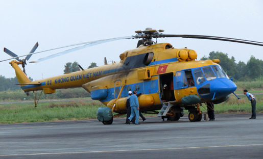 8h: Các phi hành đoàn ở sân bay Cà Mau vẫn đang chờ lệnh từ Sở chỉ huy. Tất cả 3 máy bay Mi171 mang số hiệu 02; 04 và 8431 đều sẵn sàng cất cánh làm nhiệm vụ.