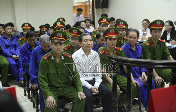 | Các bị cáo tại tòa chiều 28/4. (Ảnh: T.Nhung) |