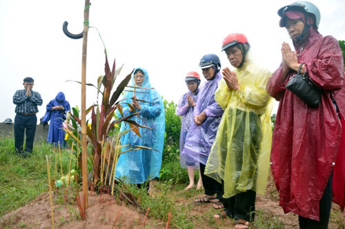 Cùng ngày, gia đình chị Huyền đã ra nơi chôn cất một phần thi thể của chị Huyền để thắp hương cho người xấu số.