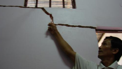 - Người dân lo sợ vì những vết nứt lan rộng, nhiều chỗ mặt đất bị xé toạc. Đã có 1 căn nhà bị đổ sập.