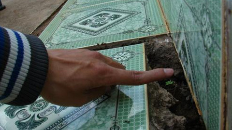 Tường nhà, thềm và sân của người dân cũng bị xé ra dài khoảng 5cm.