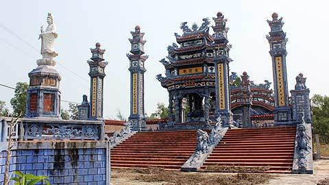 | Ngôi mộ đồ sộ của dòng họ Lê đã xây dựng hơn 2 năm nhưng vẫn chưa thể hoàn thành. Theo người chủ thầu xây mộ thì khi hoàn thành đây sẽ là ngôi mộ "khủng" nhất về quy mô cũng như tiền bạc. |