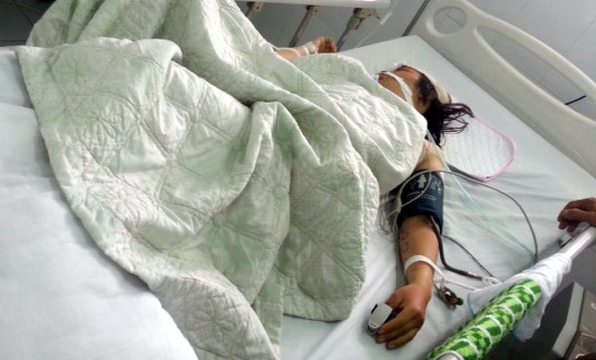 Cú đâm mạnh khiến tài xế taxi đổ gục trước vô lăng, phải nhập viện cấp cứu trong tình trạng nguy kịch.