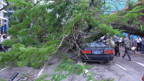 Ngô Quyền thì bị cây phượng cổ thụ đổ vắt ngang đường đè lên nóc.