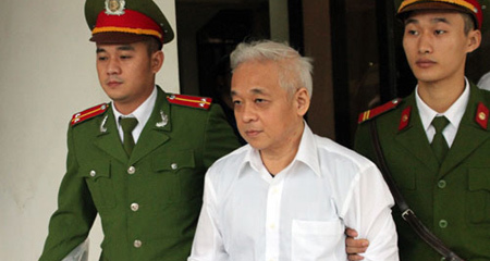 "Bằng chứng ngoại phạm, tôi đi Mỹ từ ngày 9/5/2011 trở về 20/9/2011, thời gian gửi tiền vào Vietinbank tôi không có mặt ở Việt Nam. Toà sơ thẩm không oan nhưng hơi nặng vì hậu quả xảy ra thì tôi không có ở ngân hàng. Xin giảm nhẹ hình phạt" - bị cáo Phạm Trung Cang nói.