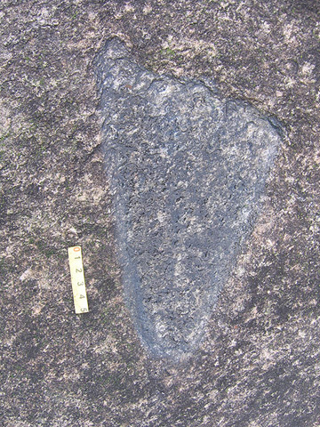 | Vết khắc hình bàn chân người. (Ảnh:xaluan.vn) |