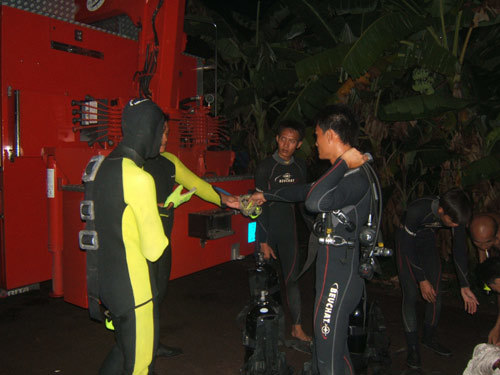 ![]() Đội thợ lặn chuẩn bị làm việc, tìm kiếm thi thể nạn nhân ![]() ![]() |