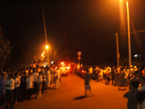 | Hàng ngàn người dân đang tụ tập theo dõi thông tin gần hiện trường |