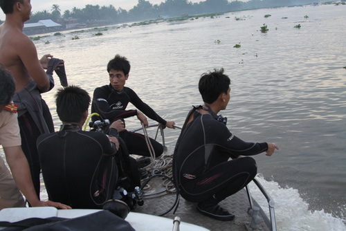 | Những thợ lặn đang bắt đầu công việc tìm kiếm - Ảnh: Tuổi Trẻ |