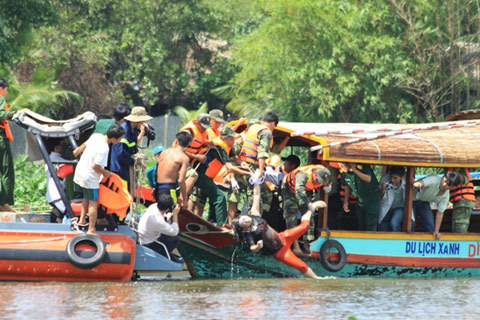 12h30: Tại hiện trường, một cán bộ Cảng vụ đường thủy nội địa khu vực 3 (đề nghị không nêu tên) xác nhận với VietNamNet rằng, còn tàu du lịch bị chìm đã hết hạn đăng kiểm vào ngày 28/1/2011; tuy nhiên chủ quản lý phương tiện không làm việc với Cảng vụ.