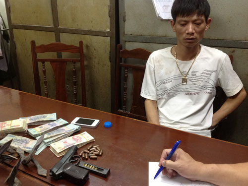 Đến ngày 27/3/2013, khi Tú “khỉ” đang nhận 200 triệu đồng của ông giám đốc, cảnh sát ập đến bắt quả tang. Bắt giữ “ông trùm”, cảnh sát thu 17 dao, kiếm các loại, 14 viên đạn K59, và nhiều giấy tờ liên quan đến cho vay nặng lãi.