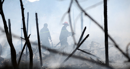 Điện đã bị cắt sau đám cháy, trong những căn lán chưa cháy là ánh nến leo lét chỉ đủ soi sáng mặt người. Đường dẫn vào khu ổ chuột ngoằn nghèo, sâu hút hút, tối như mực. Những tiếng thở dài, tiếng bàn tán, hỏi han về tài sản của nhau sau vụ cháy.