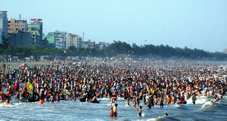 Người dân muốn ra tắm biển chỉ có 2 cách: Nếu có tiền thì vào khu resort tắm thỏa thích. Còn không tiền thì chỉ... đứng nhìn, hoặc kéo nhau ra bãi tắm công cộng nhỏ hẹp, chịu cảnh chen chúc.