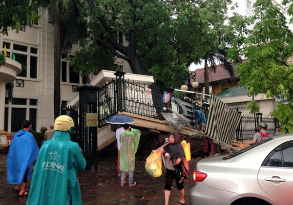 Trường đại học ở Hà Nội tan hoang sau cơn dông
