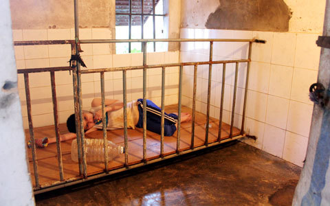 | Tất cả sinh hoạt của "cô bé" Trương Thị Anh đều diễn ra trong chiếc cũi sắt chật chội. |
