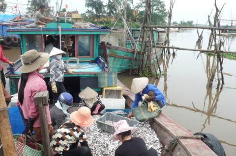 Chợ cá nơi cửa sông xã Nghĩa Thắng, huyện Nghĩa Hưng, Nam Định.
