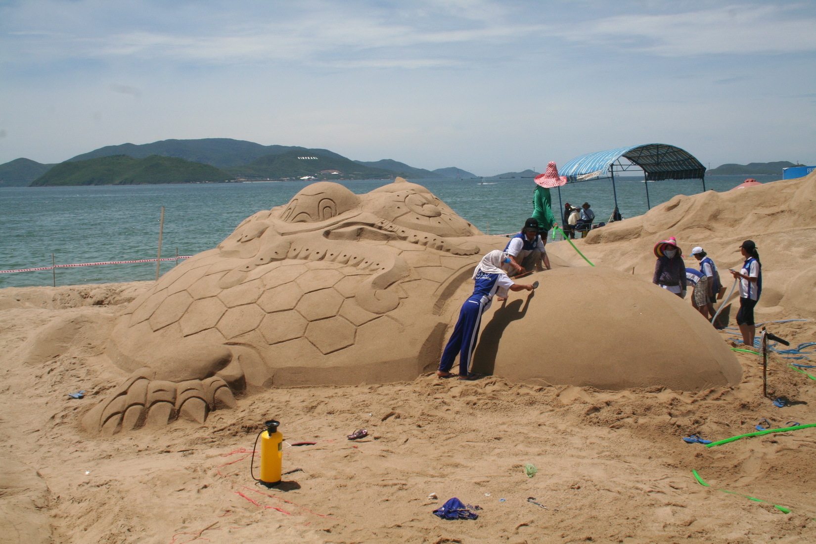 Tượng cát Rùa Thần trên bãi biển Nha Trang |