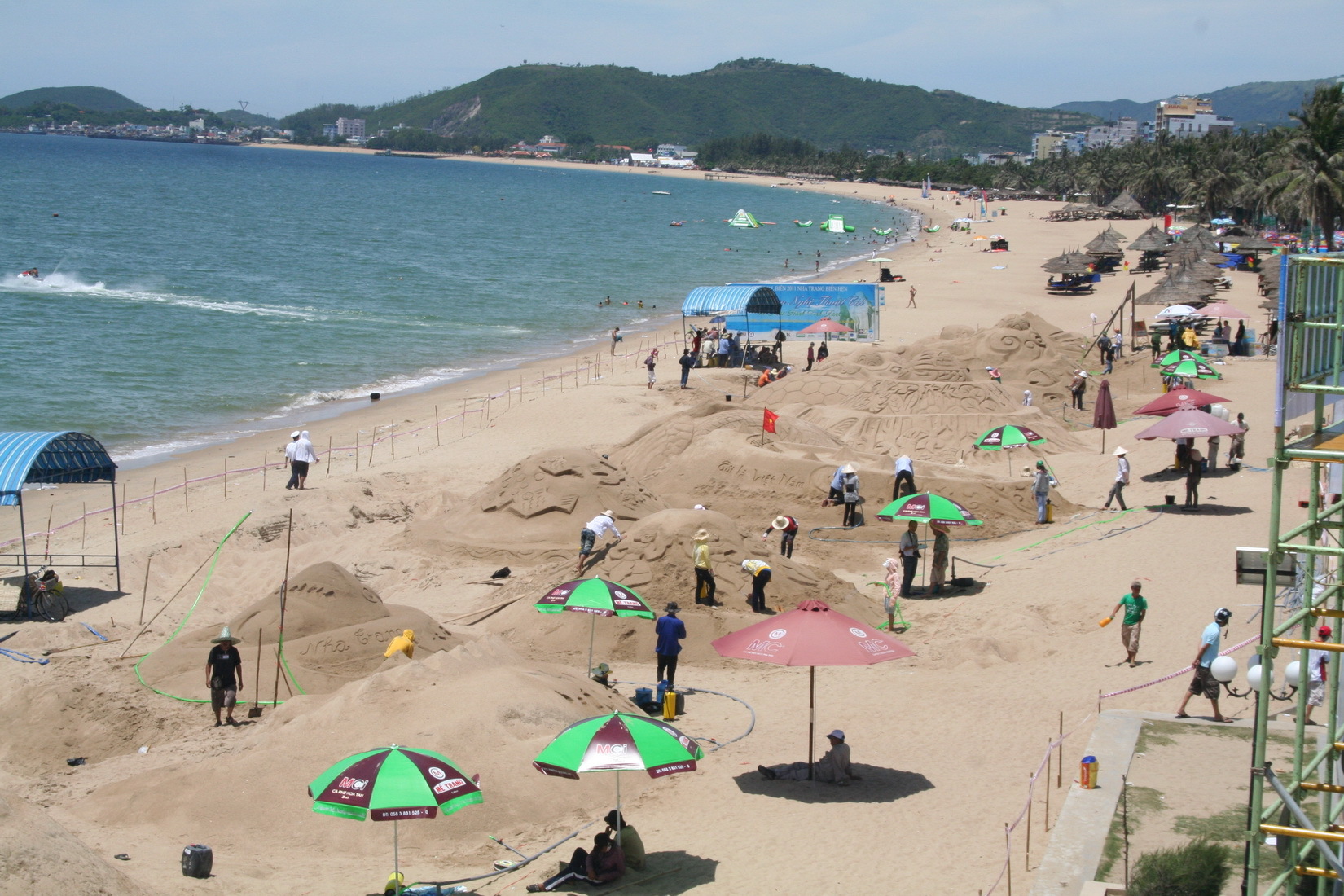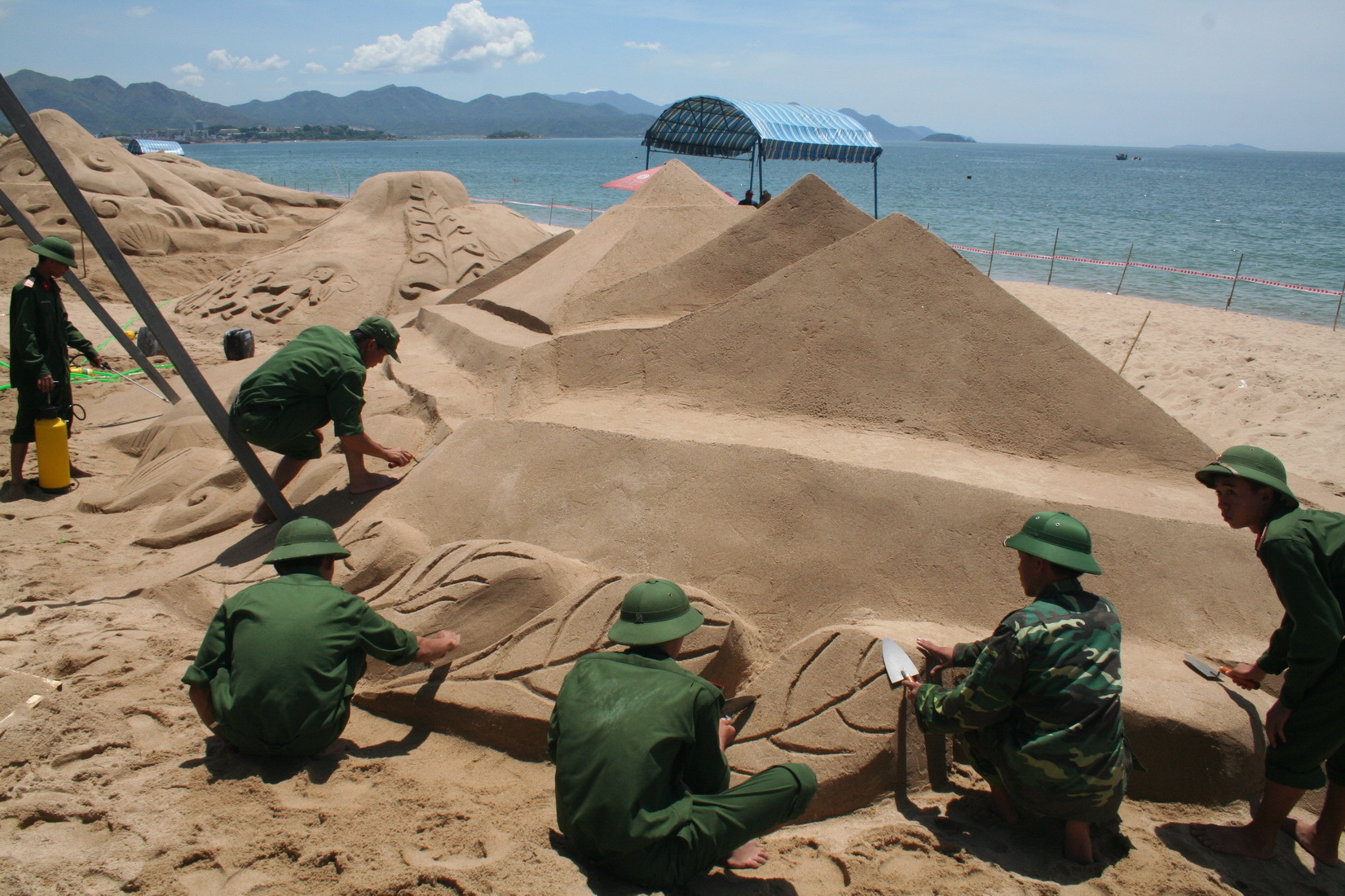 Đắp mô hình cát triển lãm trên bãi biển Nha Trang |