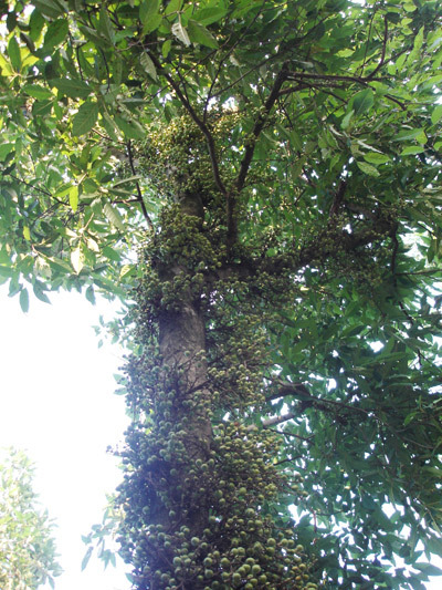 | Quả sung chi chít ôm kín quanh thân và lên tận ngọn. |