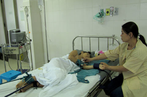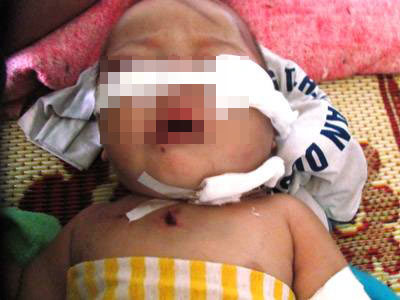 Hai chị em bị thương nặng đang được điều trị tại Bệnh viện Hà Tĩnh. Đặc biệt cháu bé 10 tháng tuổi Trần Văn Mạnh đang trong tình trạng hết sức nguy kịch.