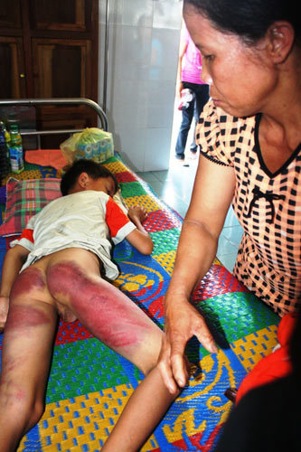 Tại Khoa Ngoại, cháu Phát phải nằm úp và đi lại phải nhờ người đỡ. Tiếp xúc với chúng tôi, Phát cho biết 'khi bị đưa vào phòng cách ly với cô Ánh, Phát đã bị hai công an viên thay nhau lấy dùi cui đánh vào đùi, mông, trong khi tay thì xách vào tai trai. Hai người này còn dùng chân đá vào hai bên đùi'.