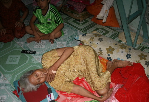 Cụ bà Bùi Thị Diệp về phòng sau khi được truyền dịch. |