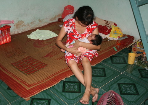| Chị Hoàng Thị Nhần và đứa con thơ 25 ngày tuổi |