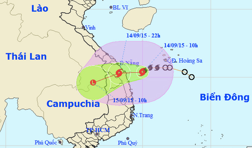 Chi cục phòng, chống thiên tai khu vực miền Trung và Tây nguyên cho biết, tính đến rạng sáng ngày 14/9, vị trí tâm bão cơn bão số 3 ở vào khoảng 15,7 độ vĩ Bắc; 110,6 độ kinh Đông, trên vùng biển Tây Nam quần đảo Hoàng Sa, cách bờ biển Đà Nẵng - Quảng Ngãi khoảng 220km về phía Đông. Sức gió mạnh nhất ở vùng gần tâm bão mạnh cấp 8, giật cấp 9-10.