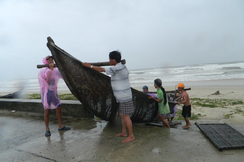 Trước đó, mặc dù bão chưa đổ bộ vào đất liền, nhưng mưa lớn và gió mạnh bắt đầu hoành hành TP. Đà Nẵng và các huyện vùng ven biển Quảng Nam. Hàng trăm người dân bị gió xô ngã khi chạy xe máy trên các cầu lớn bắc qua sông Hàn, TP. Đà Nẵng…