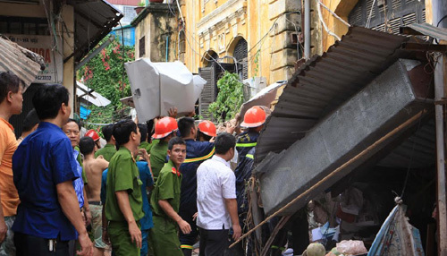 Đây là căn nhà được xây dựng từ thời Pháp, được chia nhỏ thành các phòng cho nhiều hộ. Hiện tại, trong đống đổ nát có người mắc kẹt. Cảnh sát và lực lượng cứu hỏa đang phá nhà vào cứu người.
