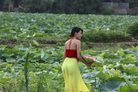 không may gặp đàn bò “choảng” nhau bên đường. Do phải bế em nên Hằng đã không