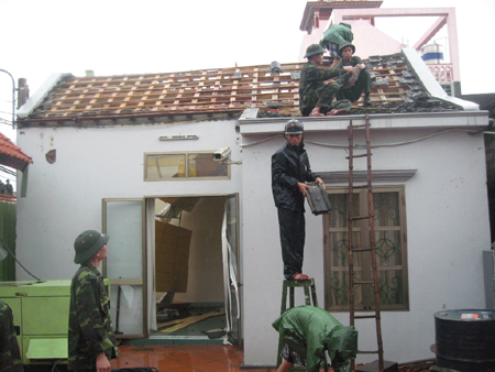 | Bộ đội giúp nhân dân khắc phục hậu quả của bão (Ảnh Lao Động) |