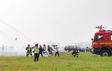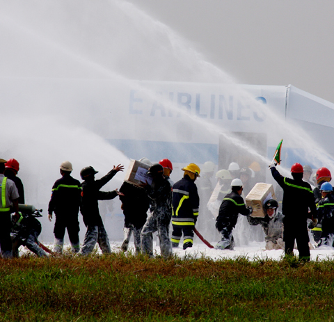 Các lực lượng chức năng diễn tập cứu nạn tại sân bay Tân Sơn Nhất - Ảnh: Tuổi Trẻ
