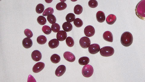 | Khó có thể phân biệt đâu là đá thật, đâu là đá giả. Những viên đá màu huyết bồ câu này ngày đó đã khiến không ít đại gia phải khuynh gia, bại sản. |