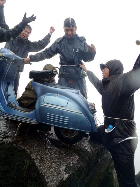 Lên đến đỉnh Phanxipăng, chiếc xe được ráp trở lại để nổ máy. Sau hơn một giờ xoay sở dưới trời mưa và độ ẩm cao, cả đoàn đã sửa thành công để chiếc vespa nổ được máy, chính thức lập kỷ lục.