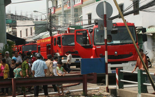 Phòng Cảnh sát PCCC quận Tân Phú được tiếp sức của PCCC Q.11 với khoảng 10 xe chữa cháy các loại và gần 100 cán bộ chiến sĩ đã tiếp cận khu vực cháy từ nhiều phía.