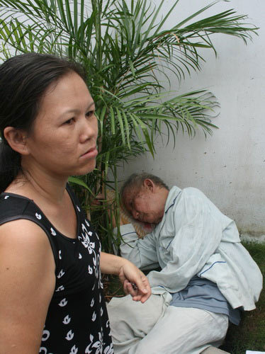 | Cụ ông Lâm Lương kiệt sức sau vụ cháy. |