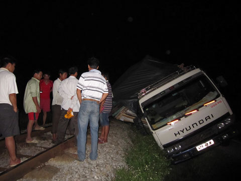 | Đường sắt tê liệt vì vụ ôtô đổ |