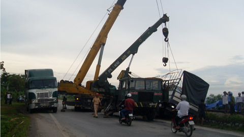 Cũng trong một diễn biến khác trên đường bộ, tại km 414 Quốc lộ 1A địa bàn xã Diễn Hồng huyện Diễn Châu (Nghệ An) vào lúc 6h37 phút sáng nay, khi lưu thông trên đường, ô tô tải BKS 89K - 3682 đã lật nghiêng lên đường bộ làm ách tắc giao thông cục bộ hơn 30 phút.