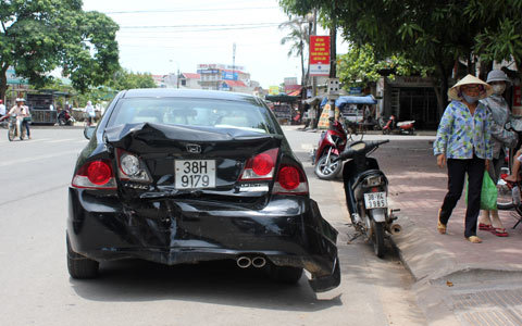 Sau khi đâm vào xe máy, chiếc xe ô tô đã tông tiếp vào một xe ô tô Civic 4 chỗ, mang BKS 38H-9179 đang đậu bên lề đường. Cú đâm xe mạnh đã khiến chiếc Civic văng xa 20m.