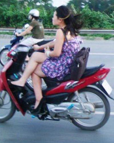 THIẾU NỮ VẮT CHÂN ĐI XE MÁY