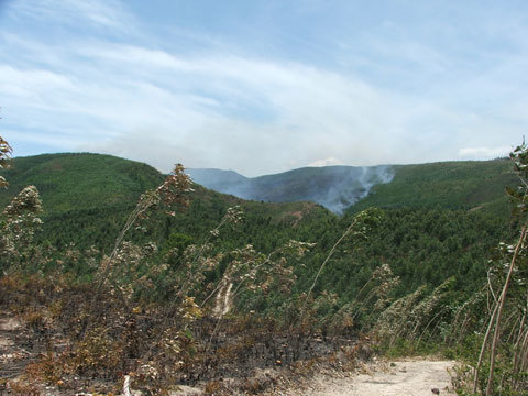 trung tâm xã Hòa Đinh Tây đến khu vực cháy rừng khoảng 9km, đường đèo dốc hiểm