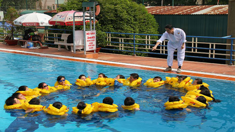 Tập luyện cứu hộ trên biển - Ảnh: Đoàn tiếp viên cung cấp |
