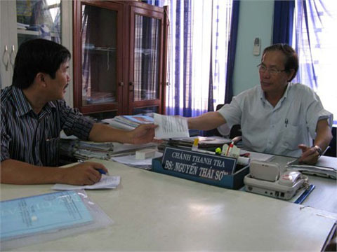 Bác sĩ Nguyễn Thái Sơn, Chánh thanh tra Sở Ytế, trao đổi vụ việc với phóng viên |