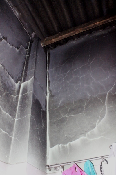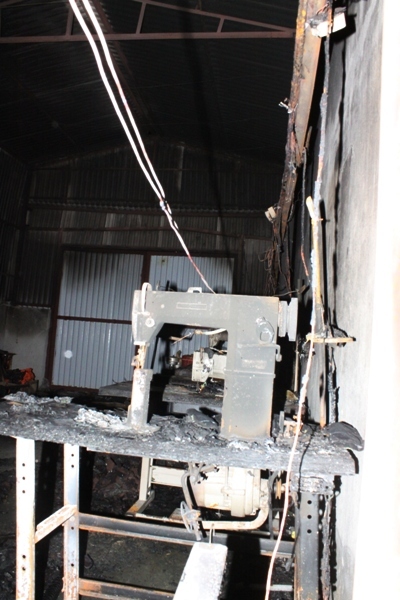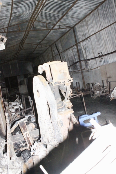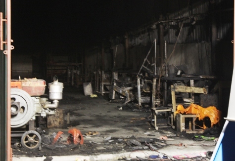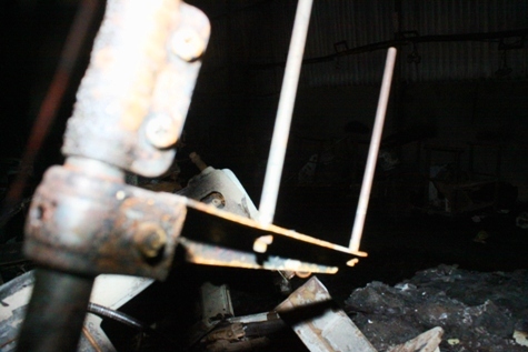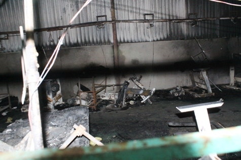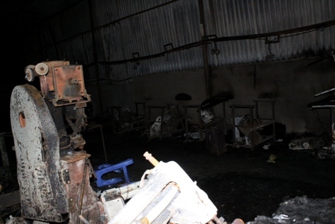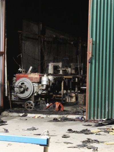 Toàn bộ hiện trường đám cháy, ngổn ngang sắt vụn. Những chiếc máy khâu, máy dập khuôn đế giầy, những bảng điện,... giờ nằm chỏng chơ trong bóng tối. Những chiếc ghế nhựa, bàn gỗ cháy dở còn sót lại.