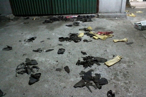 | Những đôi dép của nạn những nạn nhân còn vương đầy ngoài cửa xưởng sản xuất. |