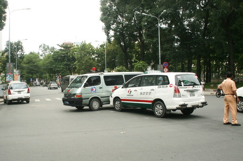 Taxi Vinasun húc vào xe cứu thương tại góc đường Lê Duẩn - Pasteur |