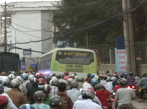 - Bến xe quận 8 suýt gây tai nạn với người đi đường rồi bỏ chạy.