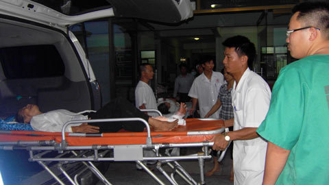 Nạn nhân được xe cấp cứu Bệnh viện đa khoa 115 Nghệ An chuyển đến cấp cứu ngay trong đêm. |