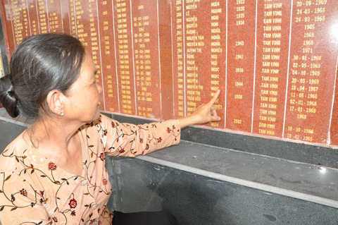 Tên bà Nguyễn Thị Ngọc tại nghĩa trang liệt sỹ |